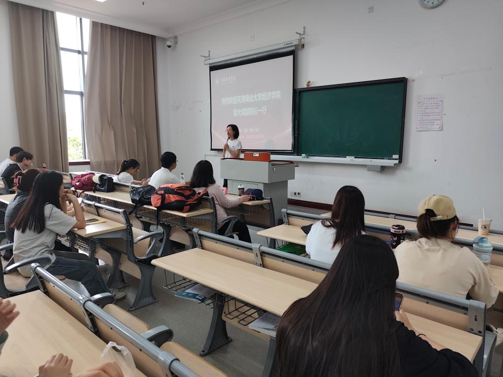 讲座上,蒙大斌副院长全面介绍了天津商业大学经济学院的学科建设情况、办学特色和研究生培养优势。他重点讲解了学院在学科领域的师资力量、科研平台和人才培养成果,并详细解读了2025年研究生招生政策、报考流程和奖助体系。