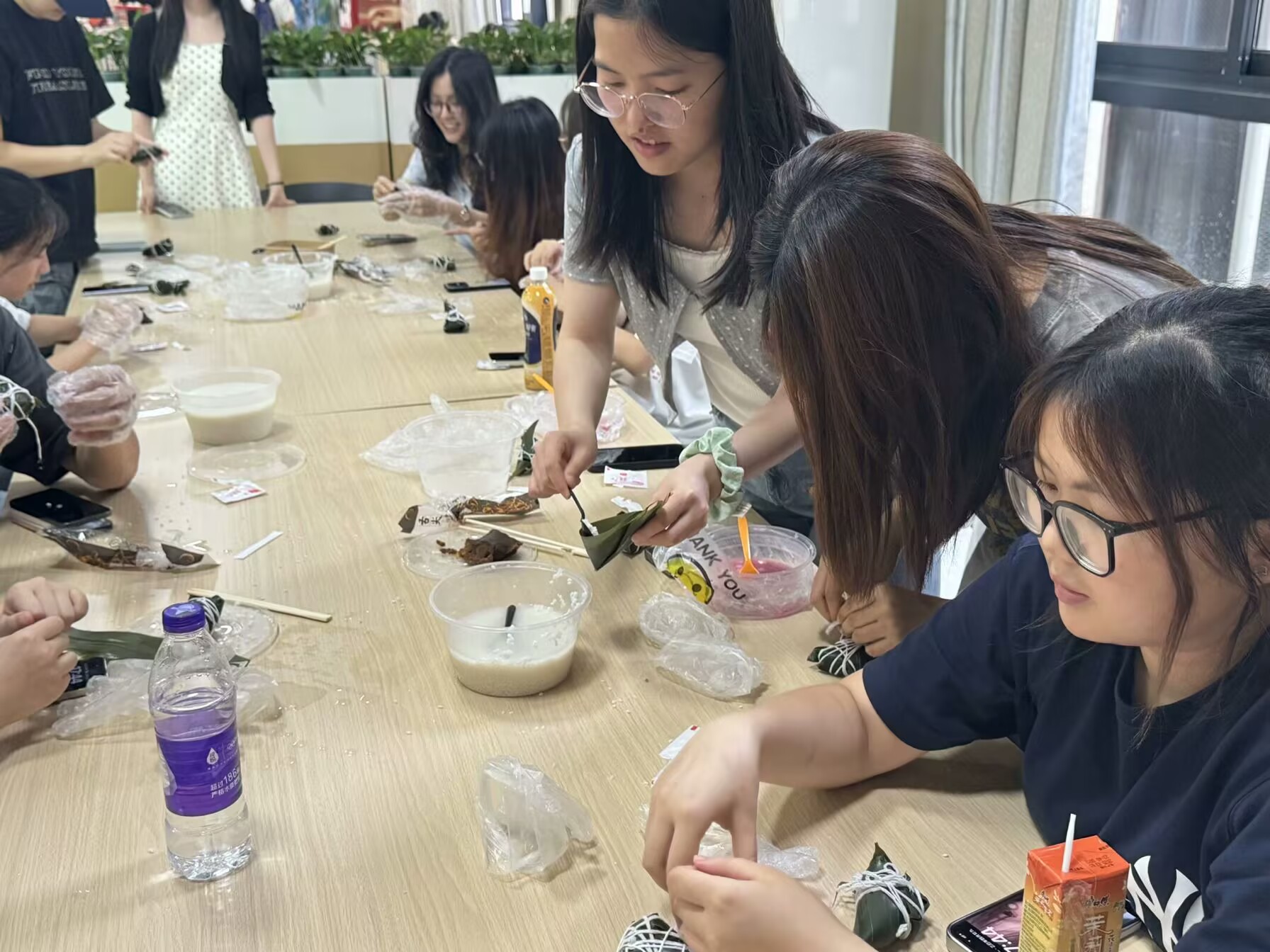 活动现场,竹篾青翠欲滴,糯米洁白如玉。在食堂专业厨师指导下,支部党员以《楚辞》吟诵开场,将屈原"扈江离与辟芷兮"的高洁品格融入包粽技艺教学。折叠粽叶作"廉筒",填米压实喻"守正",彩色丝线捆扎成"纪律结",一个个造型独特的"廉洁粽"在指尖翻飞成型。新颖的互动方式让党史教育具象化,现场笑声连连,氛围轻松活泼。