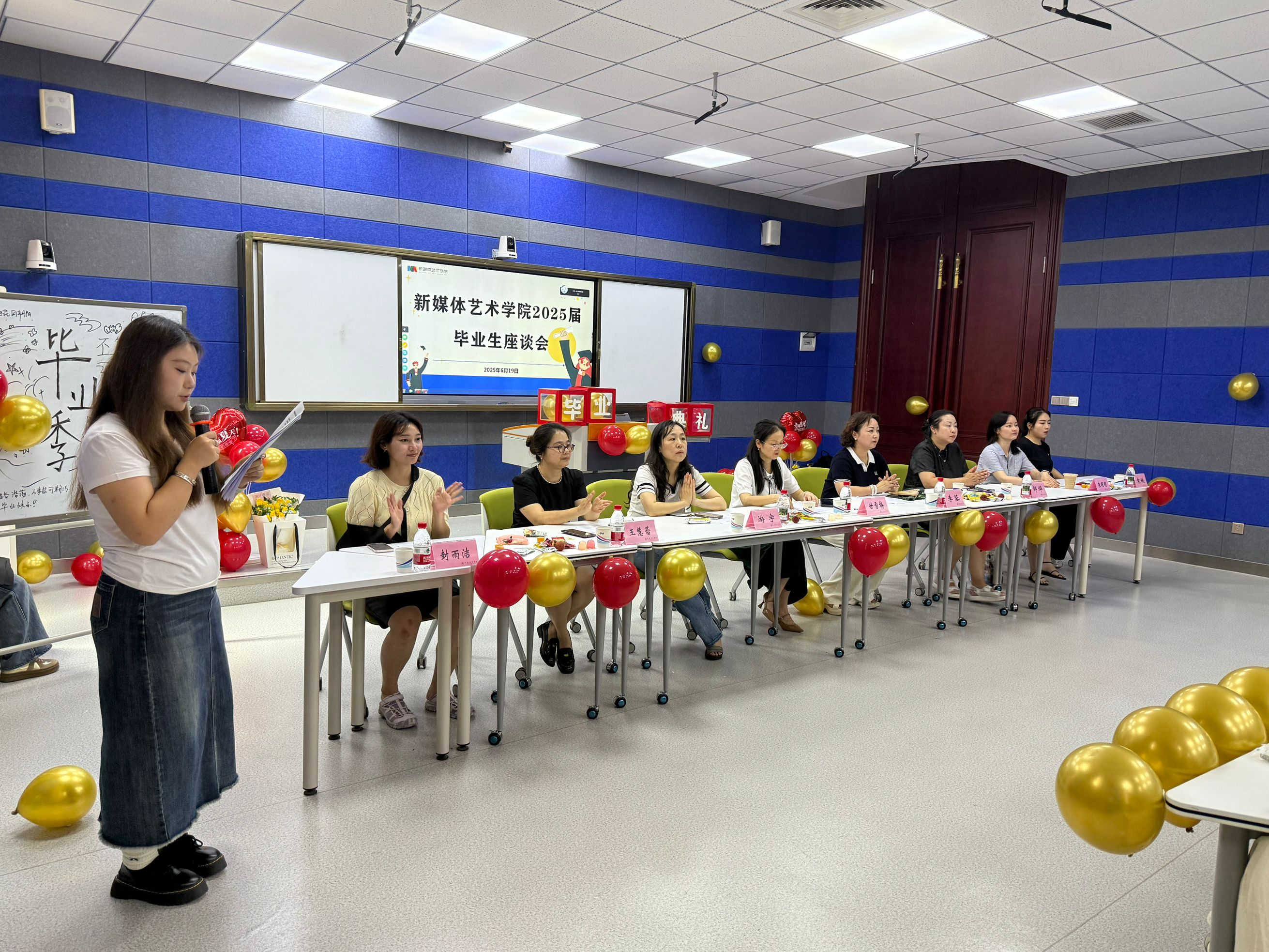 6月19日,我校新媒体艺术学院在教学楼1220教室成功举办“青春启航·艺路同行”2025届毕业生座谈会。学院党总支书记甘雪梅、副院长李蓉、院长助理游宇及学团办主任、教师代表、毕业班辅导员代表及优秀毕业生代表出席活动。
