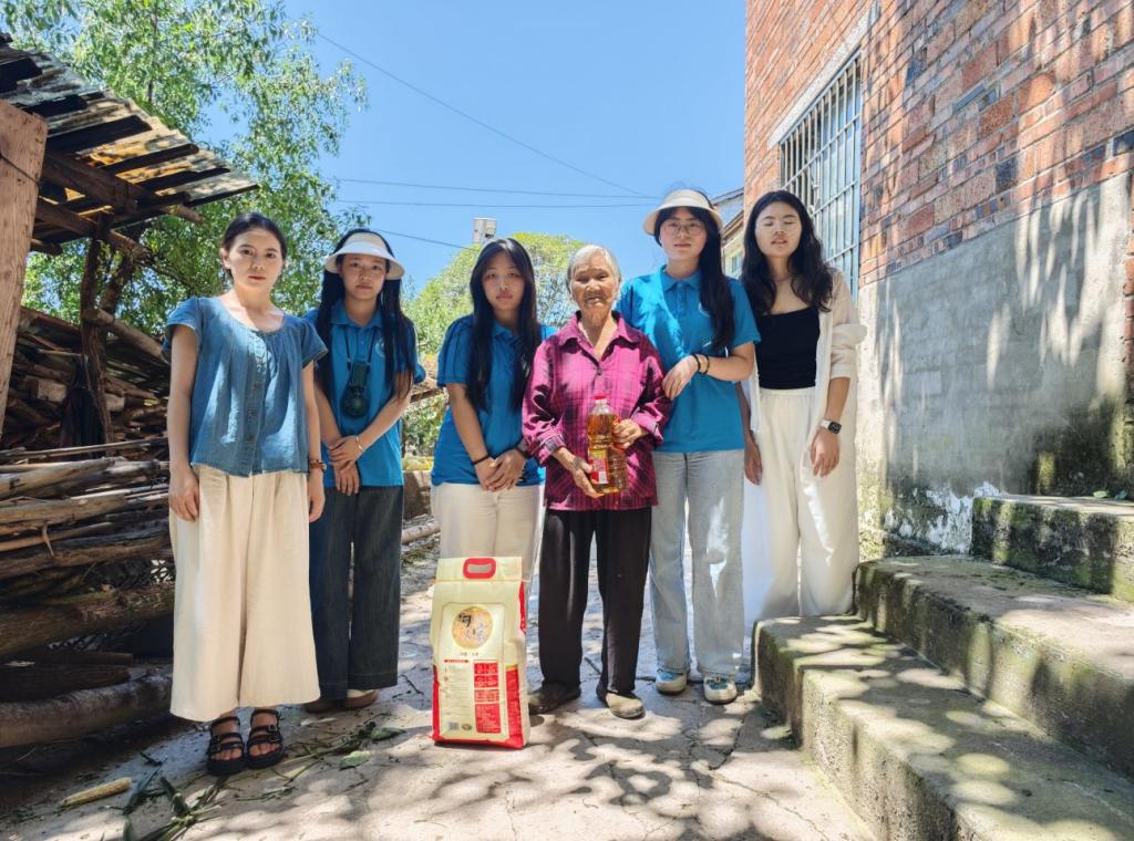 精准聚焦需求,传递物质温情。实践团还为每户家庭送上了大米和食用油,一袋袋饱含心意的大米,一桶桶承载关怀的食用油,不仅是解决眼前生活所需的实用物资,更是传递了实践团对乡村困难群体的深切挂念和社会温情。面对这份来自远方的真挚关怀,爷爷奶奶们难掩内心的激动与喜悦。一位奶奶紧紧握着学生的手,声音哽咽:“党和政府好,你们这些大学生娃娃也好,大热天跑这么远来看我们,还带这些东西……”情到深处,老人的眼眶不禁湿润,朴实的言语中饱含着对政府关怀和实践团关爱的由衷感激。