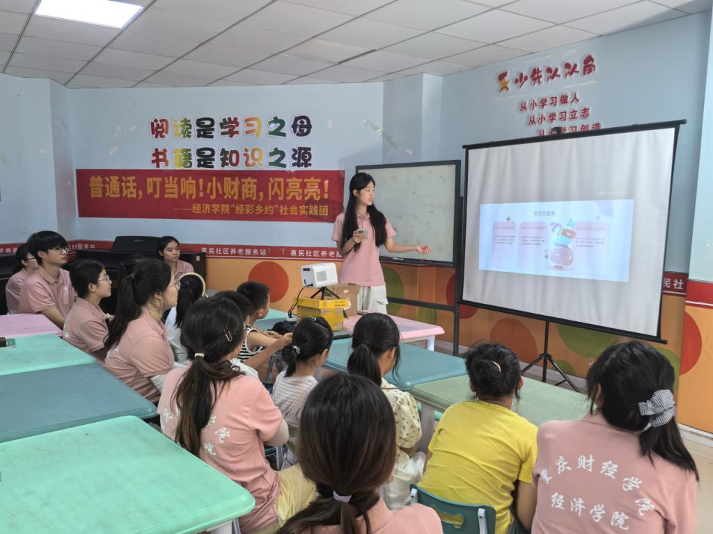 为深化乡村文化赋能与财商培育,助力青少年经济素养启蒙,7月4日,我校“经彩乡约”社会实践团走进巴南区惠民街道微型少年宫,为社区青少年精心打造了一场别开生面的“经济知识启蒙课”。此次活动由团队成员韩宜航主讲,通过沉浸式互动教学,带领20余名小朋友开启经济知识探索之旅。