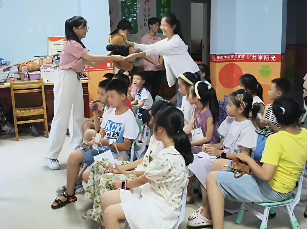在本次活动的高潮环节——微光集市,实践成员提前收集的闲置书籍、文具、玩偶等物品整理归类、明码标价、整齐摆放“集市”上,孩子们利用问答环节赢得的虚拟代金券,通过自主议价、拍卖等方式进行物品交换。现场“讨价还价”声此起彼伏,孩子们在模拟交易场景中锻炼了沟通表达能力和初步的财商思维,也亲身体会到闲置物品循环利用的意义。