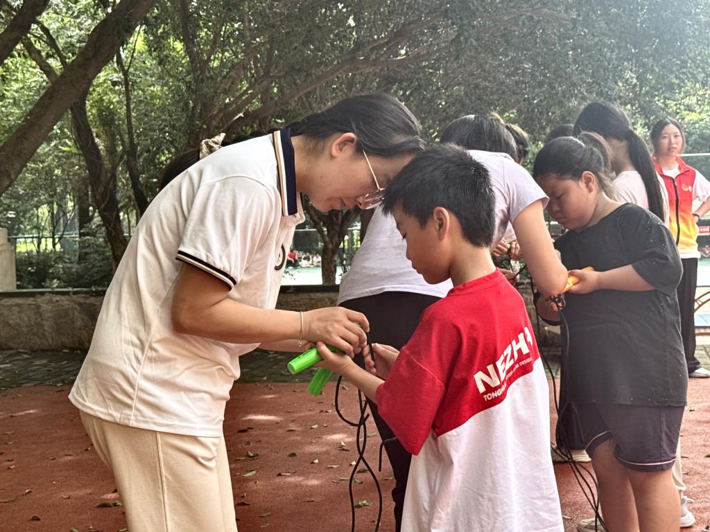 体能训练时,运动场上一片生机勃勃的景象,有球拍击羽毛球的清脆声响,有篮球撞击地面的有力节奏,有跳绳甩动划破空气的呼呼风声……孩子们在志愿者的帮助下,完成了一次又一次体能训练,这让他们的不仅体会到了运动的快乐,也让他们的身心在暑期得到放松。志愿者表示,“我们坚信通过这几日的体能训练公益教学活动定能让孩子们拥有更加健康的身心,以此促进他们德智体美劳全面发展。”