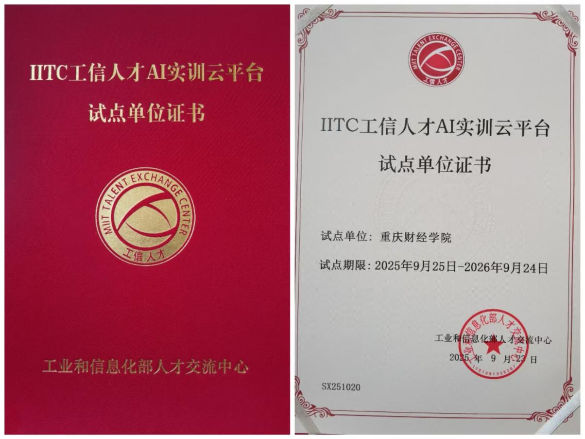 | (图1 IITC工信人才AI实训云平台试点单位证书) |