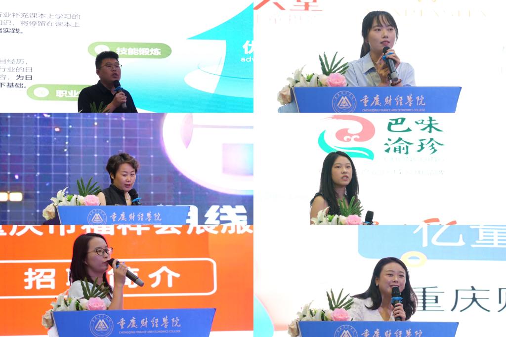 随后,6家企业通过PPT、视频等形式,系统介绍了企业概况、业务范围、企业文化及招聘岗位。其中,重庆亿量传媒有限公司重点推介了短视频运营、直播策划等岗位,分享了校企合作案例;金夫人儿童天堂有限公司则展示了儿童摄影领域的创新成果,吸引众多学生关注。企业代表们还针对岗位技能要求、职业发展路径等进行了详细解读,为毕业生提供了清晰的就业指引。