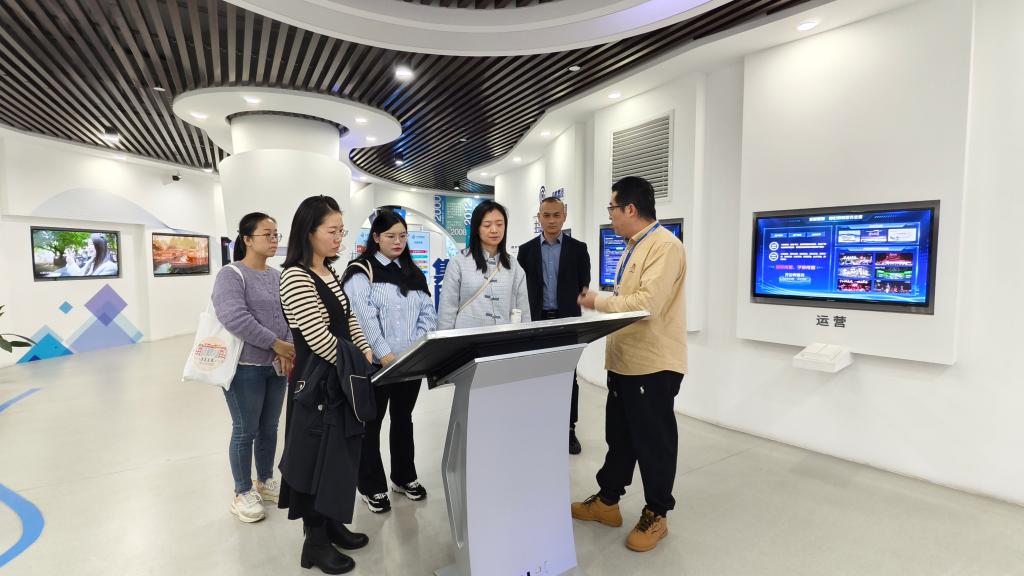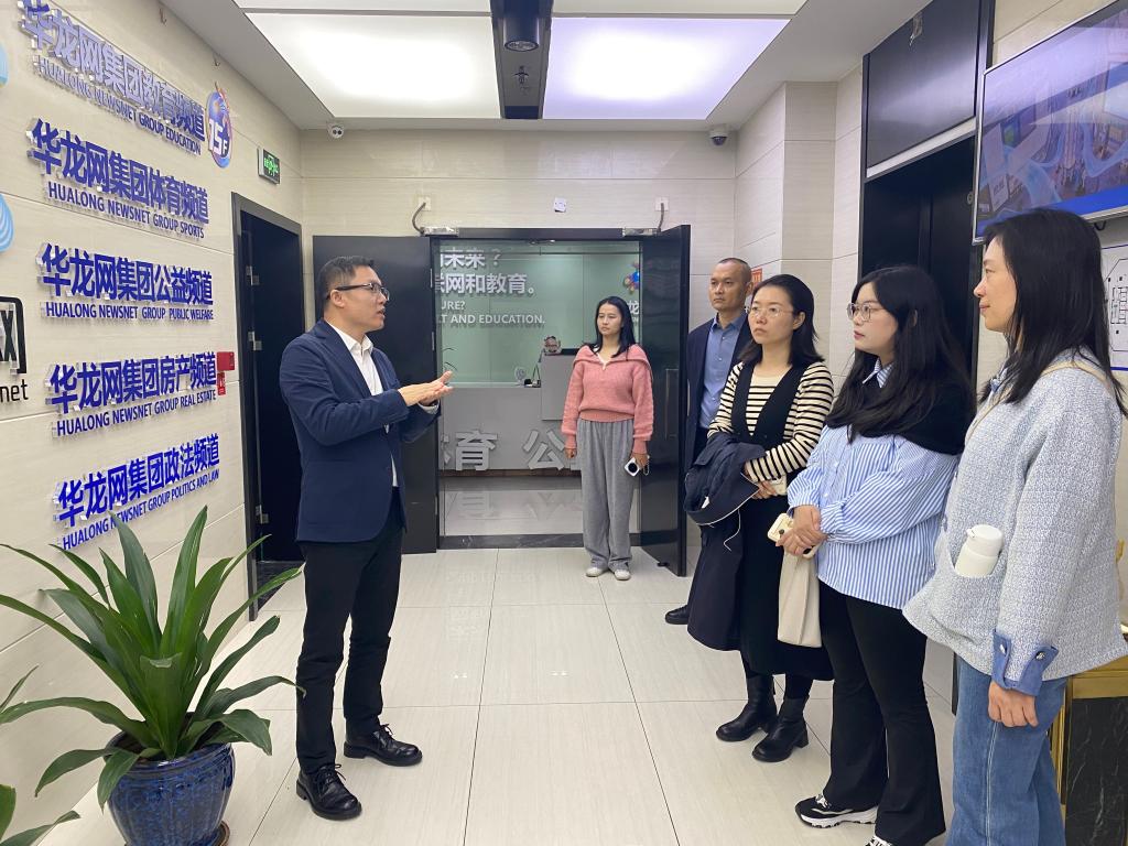 华龙网教育科技公司对姚转花一行的到来表示热烈欢迎,在姚辉省、姚颖的引导下,参观了华龙网集团数字传媒与产业创新展示中心,了解了华龙网的基本概况、发展现状和特色项目。