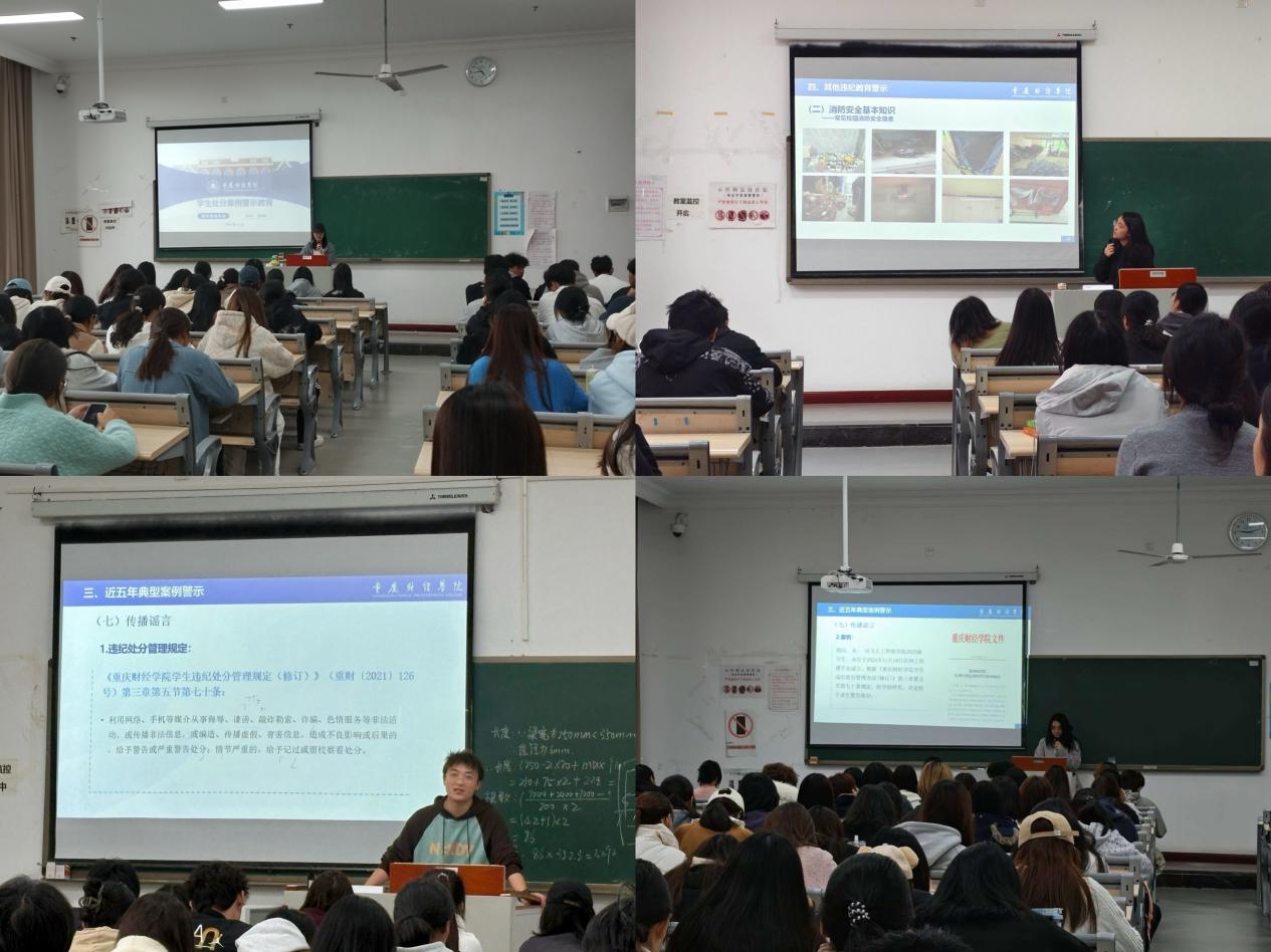 班会上,各班辅导员围绕“违纪处分管理规定”“处分案件分类统计”“近五年典型案例警示”“其他违纪教育警示”五个板块进行讲解,清晰阐述了纪律处分种类及影响期、常见违纪行为及对应处分、减轻或从重处分情形等,并将管理规定与警示事例相结合,重点强调了酗酒、旷课、打架斗殴等行为的后果与严重性。