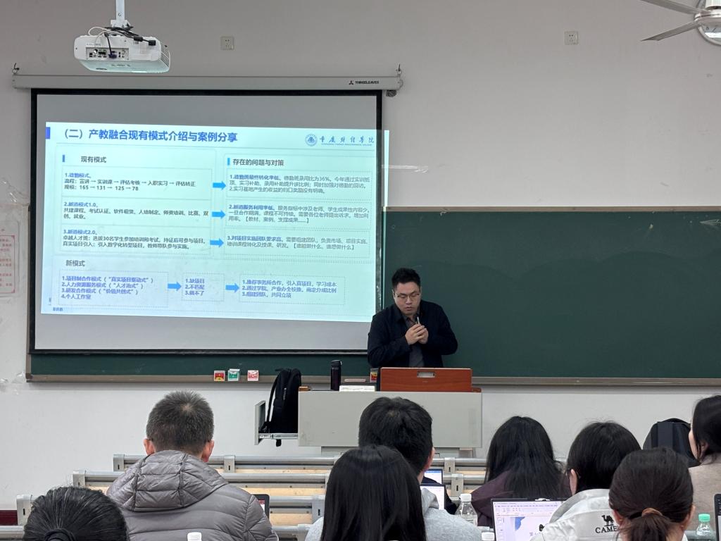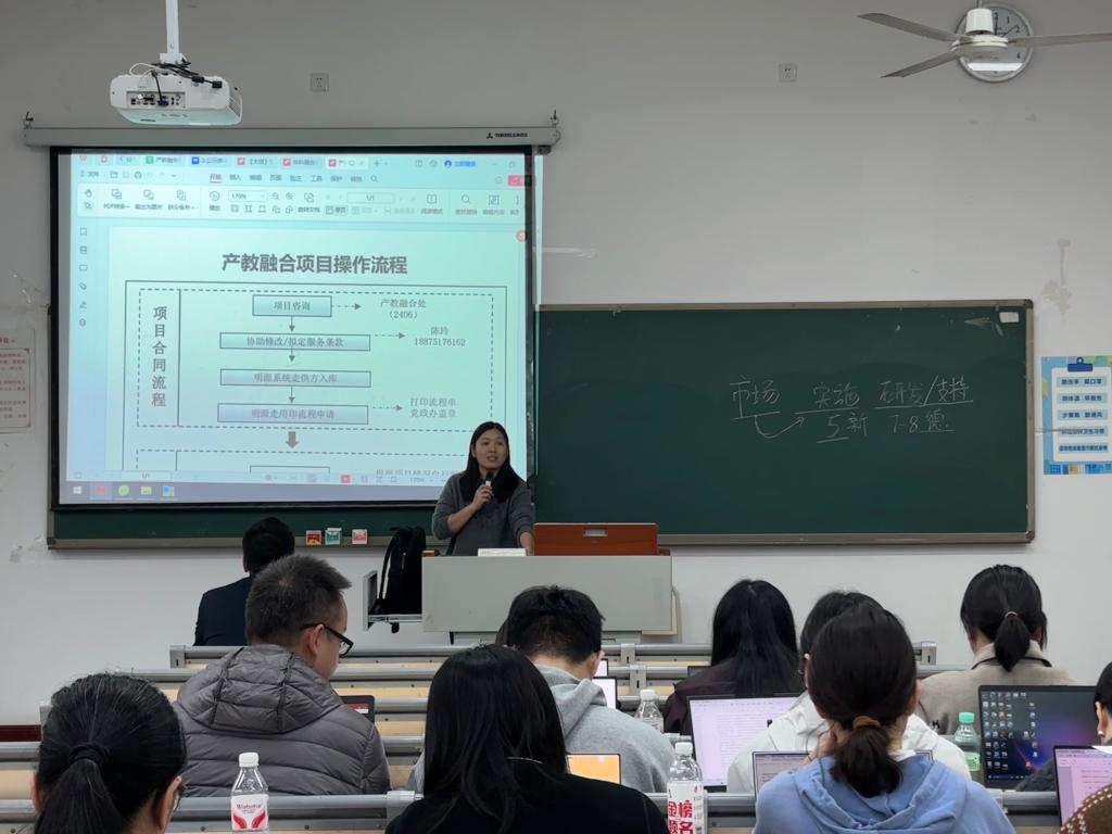 随后,会议还规范了产教融合项目全流程操作标准。从项目咨询、合同拟定、系统入库与用印申请的前期流程,到团队组建、场地落实、按标执行的项目实施阶段,再到成果交付、开票报账的结项环节,均明确了具体要求。