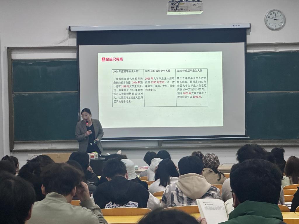 为践行学校“个个有赛道,人人能出彩”的分流培养理念,精准服务学生多元化就业需求,2025年11月,澳门新葡京博彩软件学院联合金标尺教育,围绕“公职备考及选岗技巧”主题成功举办四场专题讲座。活动吸引了300余名有志于公职赛道的大三、大四学子踊跃参与,学院全体专职辅导员全程护航,共同为学生的职业规划增添重要砝码。