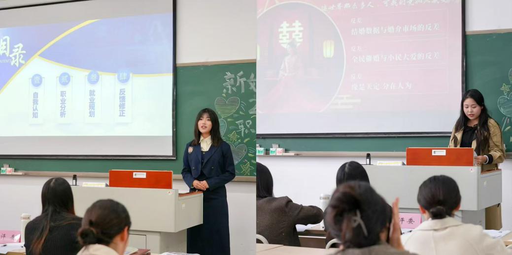 在主题陈述环节,选手们围绕自我认知、职业环境分析、目标岗位匹配度、实施路径等方面进行现场展演。选手们结合自身专业背景、兴趣特长及实践经历,从行业趋势分析、职业目标定位、核心优势梳理、短板弥补方案到短期与长期发展计划进行全面阐述。不少选手将目光投向文旅策划师、广播编导等热门及新兴领域,部分选手分享了参与社区公益性教学、婚姻介绍所等实践经历,展现了对自身职业发展的热情与扎实的实践功底,彰显了正确的择业就业观念。在评委提问环节中,评委们从行业趋势、岗位能力、实践路径等角度出发,与选手展开深入交流,并提出中肯建议。