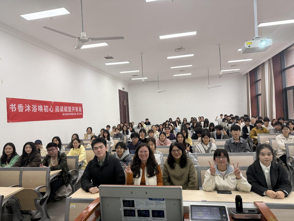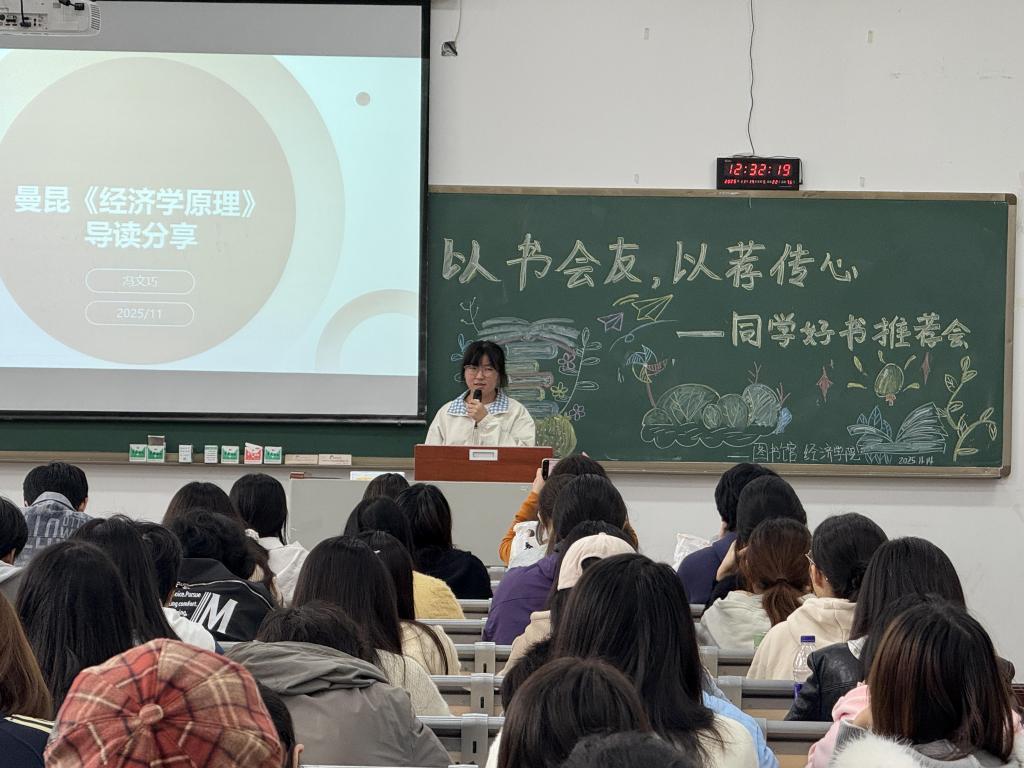 图寸家菊老师与蔡婷老师对活动的举办给予高度肯定,鼓励同学们以书为媒,坚持阅读、乐于分享,在墨香中沉淀自我、增长才干。此次好书推荐会不仅为同学们提供了展示与交流的平台,更以书为桥,传递阅读乐趣、凝聚思想共识,进一步推动了校园书香文化建设。未来,图书馆与经济学院将继续携手,打造更多优质阅读活动,让阅读成为校园生活的新风尚,让书香浸润学子成长之路。