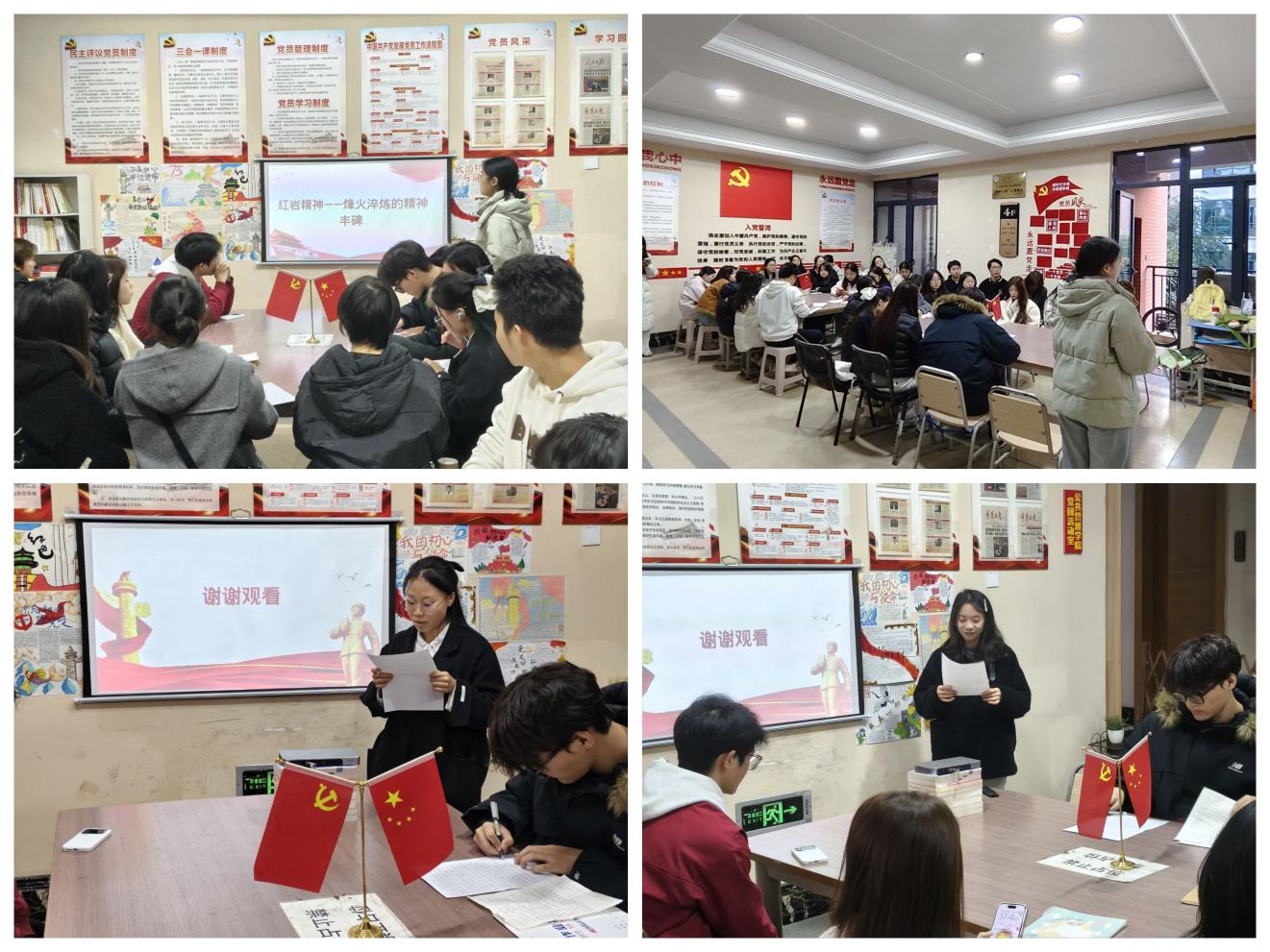 本次活动打破传统“单向灌输”的学习模式,以党小组为单位构建“理论溯源—交流践行—心得升华—传播赋能”的沉浸式学习体系,推动学生党员从红色故事的“被动倾听者”蜕变为红岩精神的“主动传播者”。各党小组代表主动扛起分享责任,紧扣主题深挖红岩精神的历史脉络与时代价值,通过精心打磨的 PPT,将红岩精神与二十届四中全会精神深度结合,清晰阐释二者在信仰坚守、斗争意志、人民立场上的高度契合——红岩精神中爱国奋斗、忠诚担当的核心内核,与全会提出的科技自立自强、民生保障提质等部署同频共振。在交流研讨环节,党员们不再是“沉默的听众”,而是主动结合专业所学和社区实践,共同梳理出思想宣传、精神融入、实践落地等八条具体路径,明确要以红岩精神为指引,将全会部署转化为可感知、可参与的社区服务行动,让红色精神在传播中焕发实践活力。