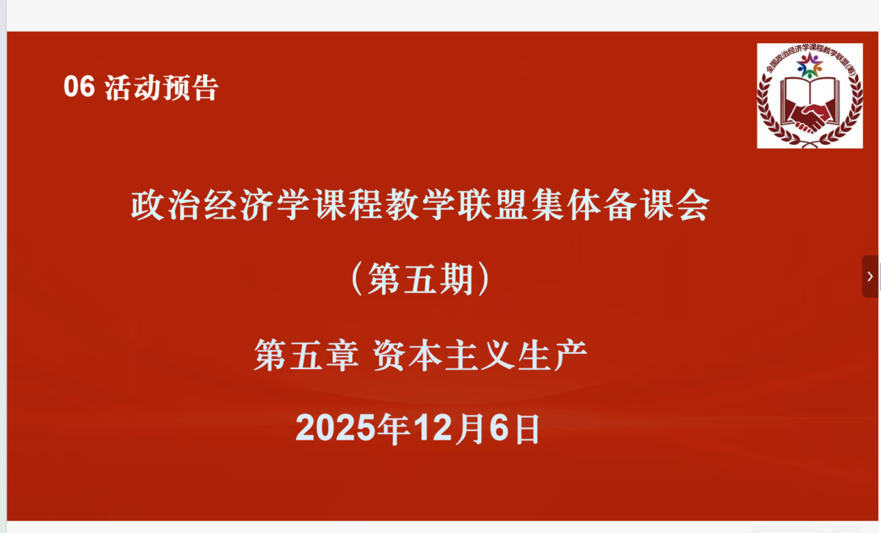 由我校市级经济学课程群虚拟教研室联合发起的这次全国政治经济学集体备课会的成功举办,巩固了高校间的教学协作机制,推动了政治经济学课程在理论教学与实践创新方面的深度融合,势必将推动教学资源共享与经验共建,与全国兄弟院校携手努力,不断提升政治经济学课程建设与人才培养的质量和水平。
