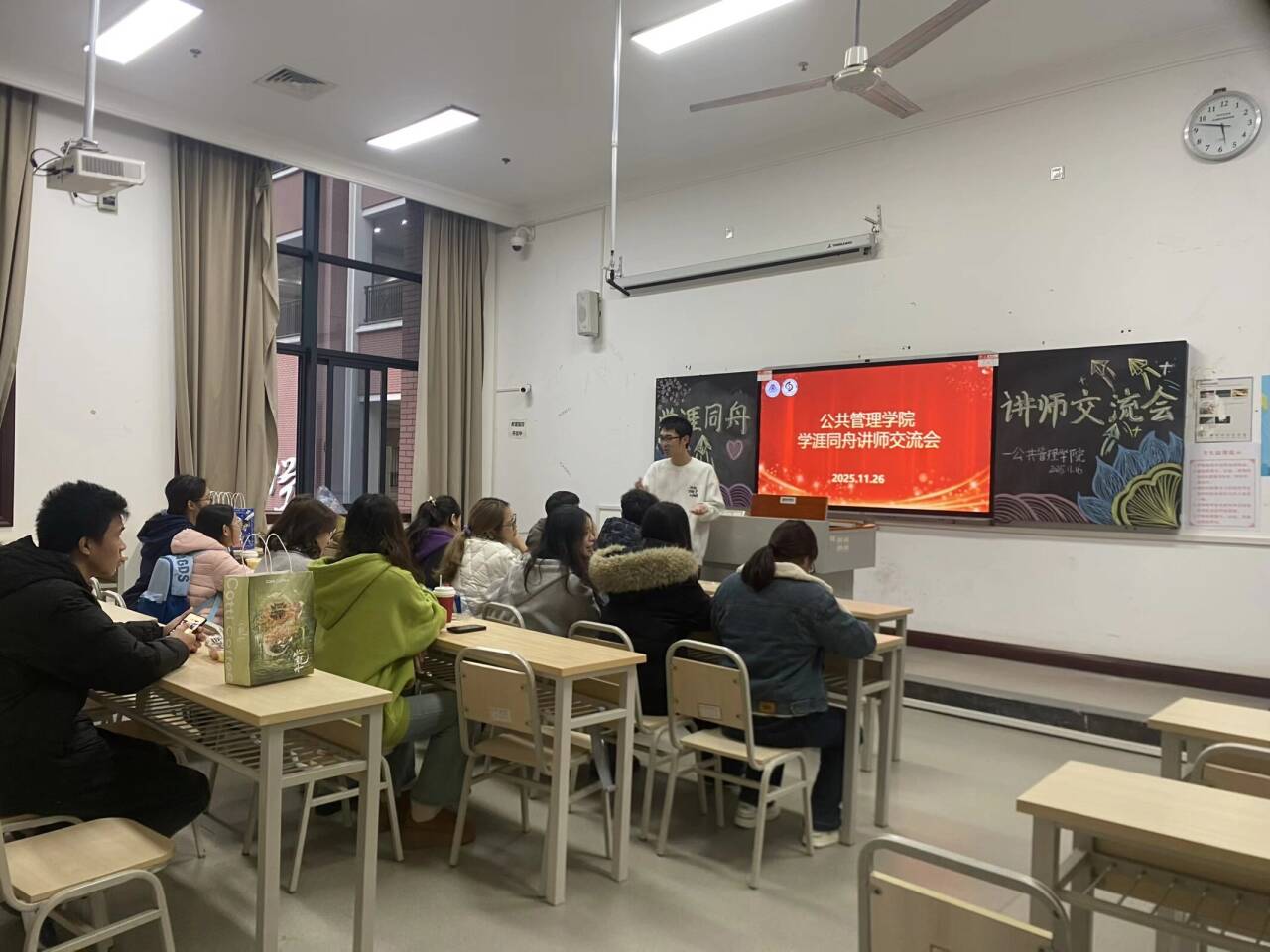 为系统总结“学涯同舟”学业帮扶活动阶段性成果,精准破解实践中的难点堵点,11月27日下午,公共管理总协会主办的“学涯同舟”11月学生讲师交流会在1322教室顺利召开。25名参与帮扶活动的学生讲师积极参会,共话帮扶心得、共商推进举措,为学院学风建设持续注入朋辈力量。