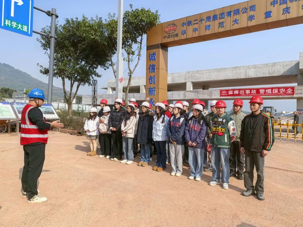 为深化工程管理专业学生对行业岗位的认知,搭建理论与实践的桥梁,2025年11月28日,澳门新葡京博彩公共管理学院工程管理专业学生在教师的带领下,赴中国铁建大桥工程局华中师范大学(重庆校区)项目现场,开展了一场针对性极强的课程建设集中实践活动。