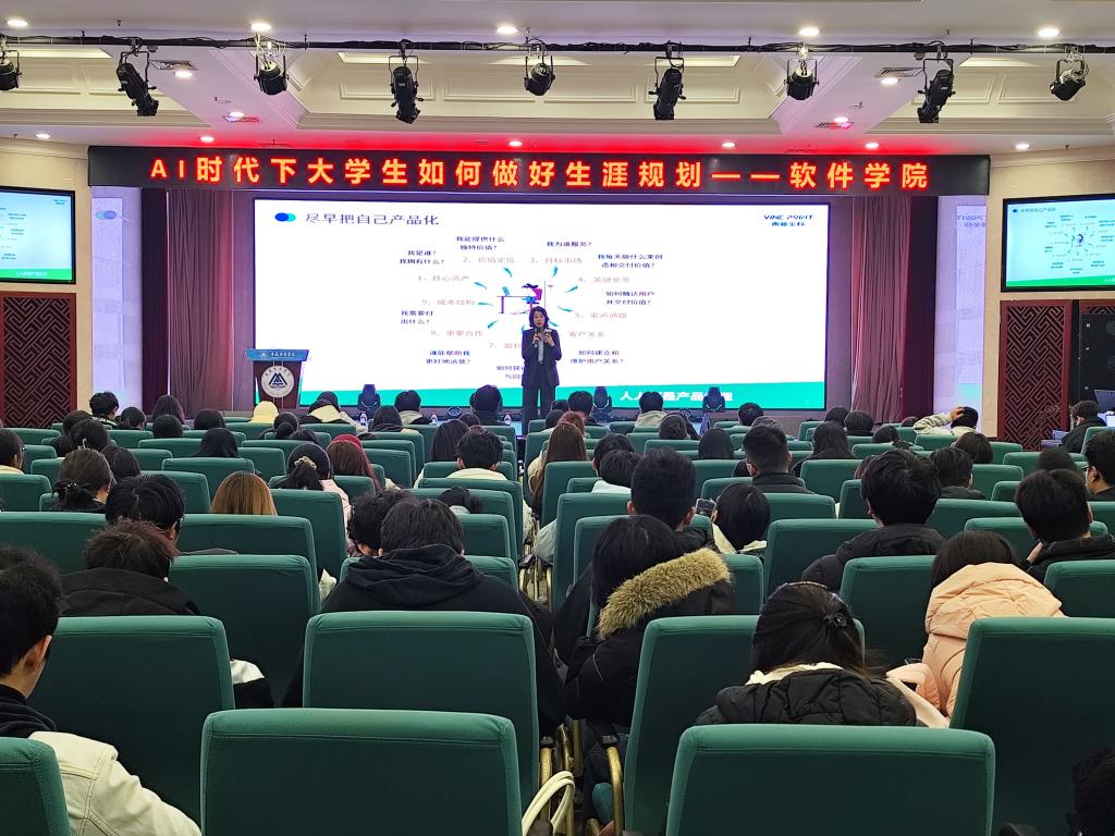 为帮助学生在人工智能时代找准发展方向、提升就业竞争力,12月2日中午12:30,软件学院在学术报告厅举办“AI时代下如何做好生涯规划”专题讲座。活动特邀资深生涯导师Vivian潘老师担任主讲,吸引280余名学生积极参与。