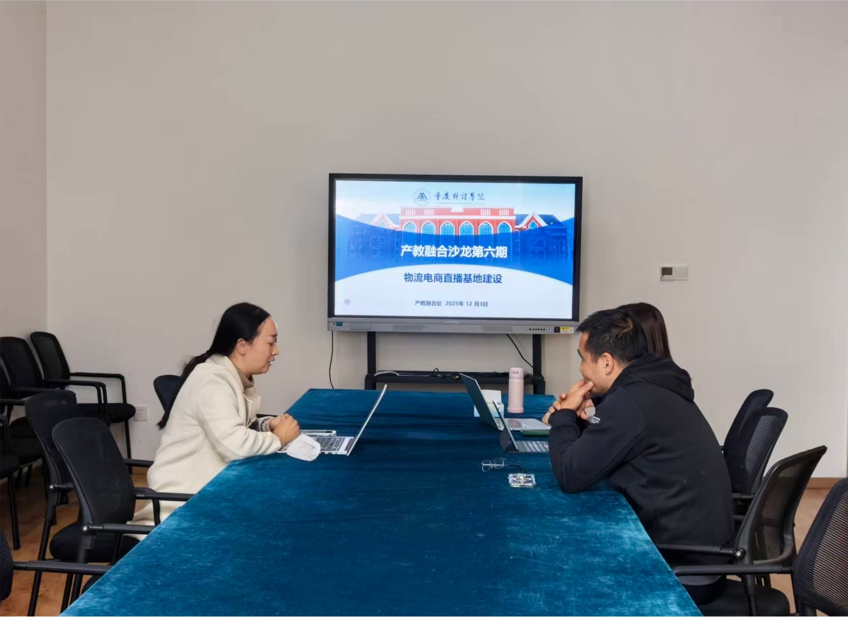 为深化产教融合创新实践,探索数字化背景下电商人才培养新模式,切实提升师生创新能力与实践能力,12月3日,我校第六期产教融合沙龙——“聚焦电商直播实践基地建设”在图书馆研讨室举行。学校产教融合首席教授周启刚、物流工程学院产业院长李占凤参会。沙龙由产教融合处处长曾真主持。
