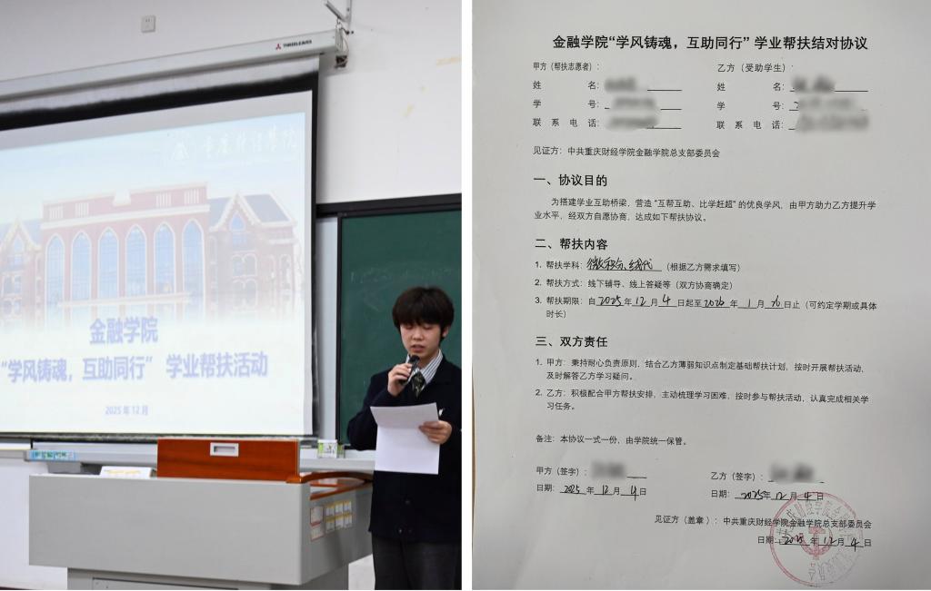 为深入推进学风建设,营造“比学赶超、互帮互助”的优良学习风气,近日金融学院成功举办“学风铸魂,互助同行”学业帮扶活动。本次活动通过系统筹备与丰富互动,影响范围覆盖全院,有效促进了优良学风的形成。