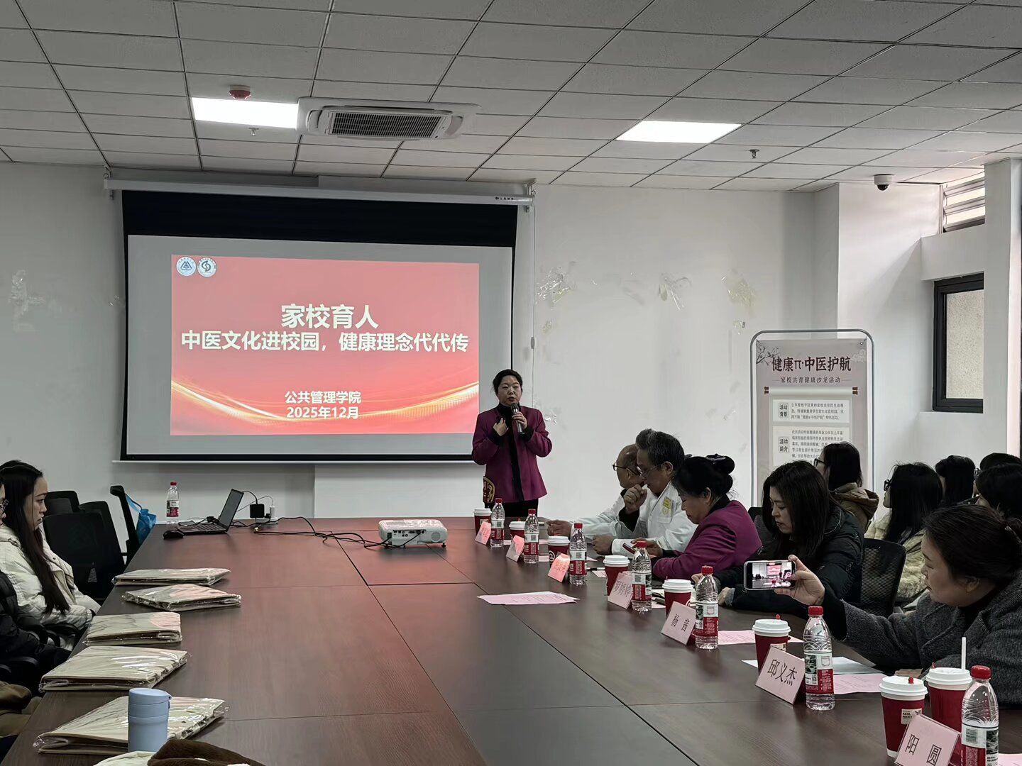 12月11日中午,由公共管理总协会主办的“健康π·中医护航——家校共育健康生活沙龙”在G1-109活动室成功举办。本次活动旨在通过整合学校、家庭与社会三方专业资源,将中医健康知识转化为学生与家庭“看得见、学得会、用得上”的日常生活技能,推动健康管理从理论走向实践。