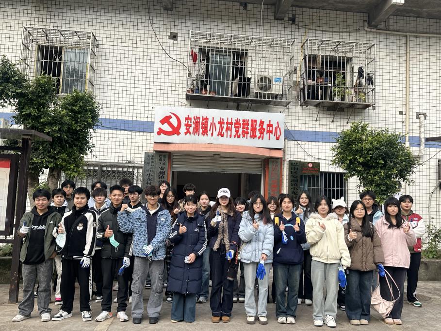 2025年12月10日,25智能科学技术2班的48名同学赴小龙村开展村庄卫生清洁实践活动。刚抵达村委会,村干部便向同学们介绍了村庄环境治理的重要性及当天的清洁任务 ——清理村内主干道、休闲广场的垃圾杂物,擦拭公共设施,助力美丽乡村建设。