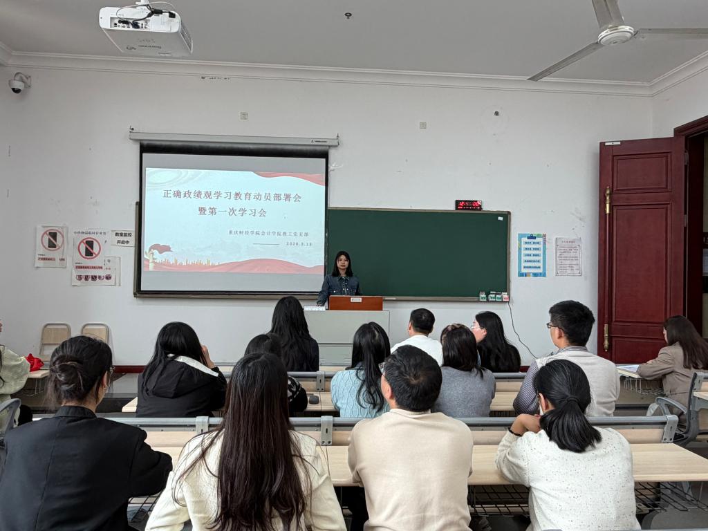 为深入学习贯彻习近平总书记关于树立和践行正确政绩观的重要论述,严格落实中央、重庆市委部署要求,引导教师党员筑牢思想根基、强化使命担当,3月13日,会计学院教工党支部在1521教室以“深学细悟强党性,笃行实干树政绩”为主题,召开树立和践行正确政绩观学习教育动员部署会暨第一次学习会,扎实推动学习教育走深走实、落地见效。