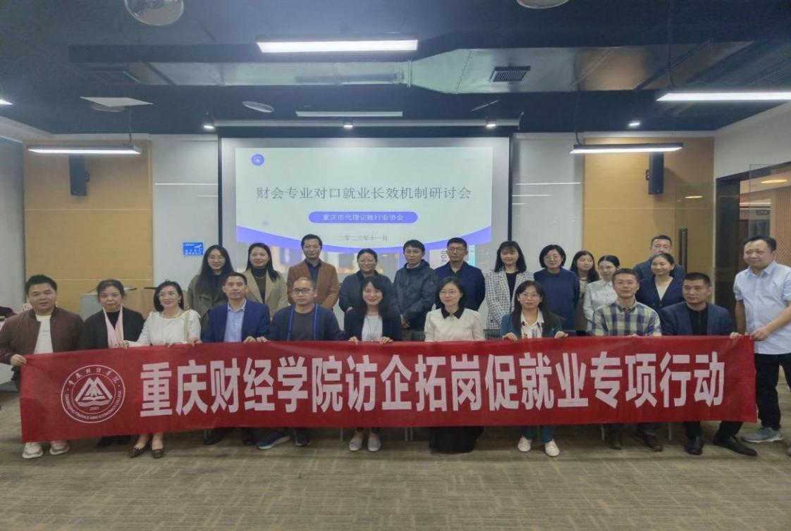 为推动“访企拓岗促就业”专项行动持续开展,深化学校与用人单位间的供需对接,挖掘更多岗位资源。11月2日下午,我校财富管理学院党总支书记宋钰静、会计学院党总支书记姚转花、财富管理学院副院长杨振,财富管理学院、会计学院各教研室负责人及学生代表一行前往江北区红旗河沟参加2024财会专业对口就业长效机制研讨会。出席会议的有重庆市市场监督局二级巡视员蔡晓波,重庆市人才交流服务中心大学生工作部部长梁晶,重庆市代理记账行业协会会长冯璞、秘书长刘刚、会员中心主任谢康。