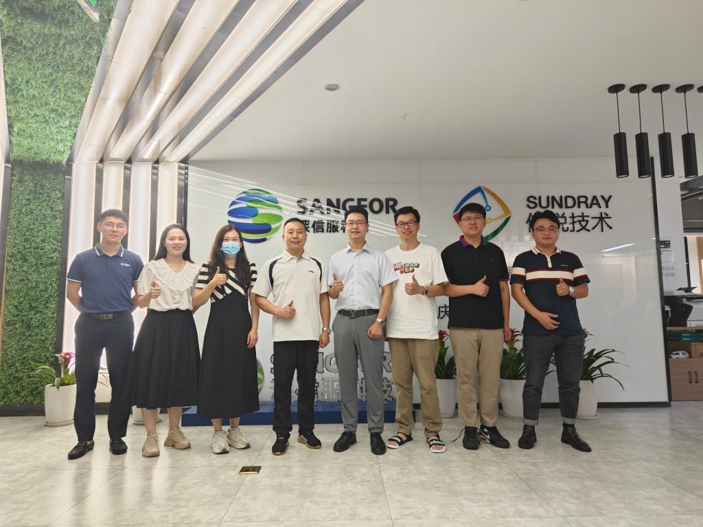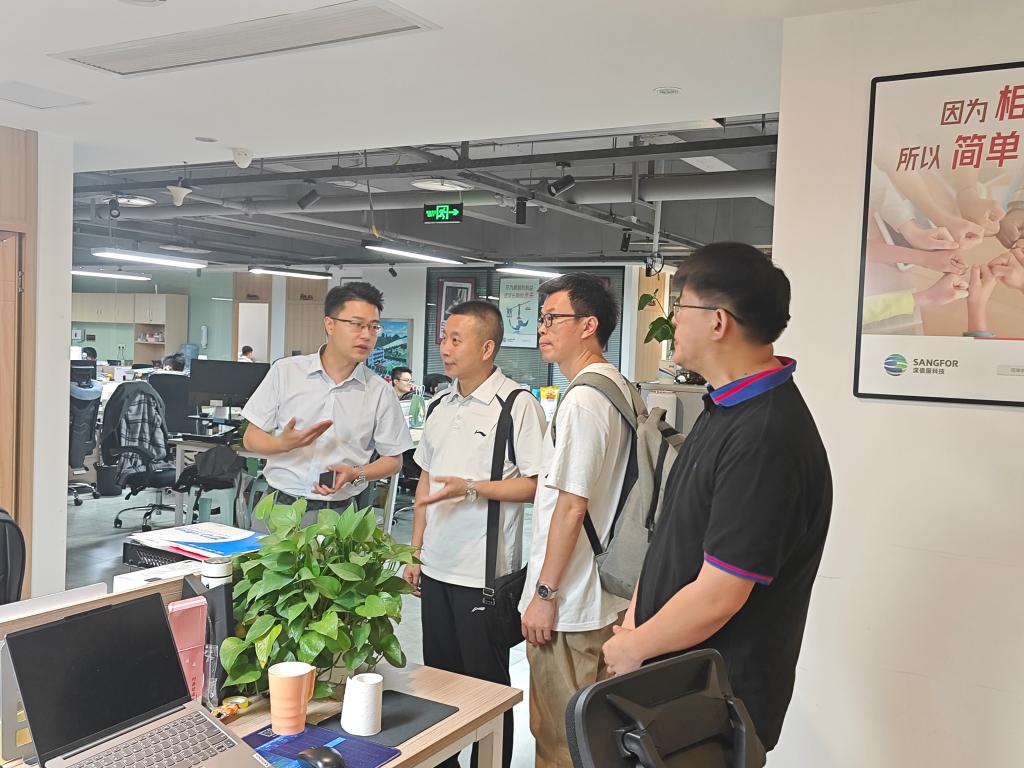 为了响应教育部关于访企拓岗促就业专项行动的号召,深入推进校企深度产教合作,完善人工智能相关专业人才培养方案,7月21日上午,我校讯飞人工智能学院党总支书记王晓云、副院长田荣阳及教研室主任陈丹、曹飞和讯飞西南区教育板块市场渠道部刘红印等一行前往重庆市渝北区星光大道天王星C1座3-1深信服科技有限公司(上市企业、信息安全头部企业)重庆区洽谈交流。深信服科技股份有限公司重庆区主管洪慧敏、高教总监陶波、行业客户经理谭超及深信产教融合(成都)科技有限公司副总经理杨言参加交流洽谈。