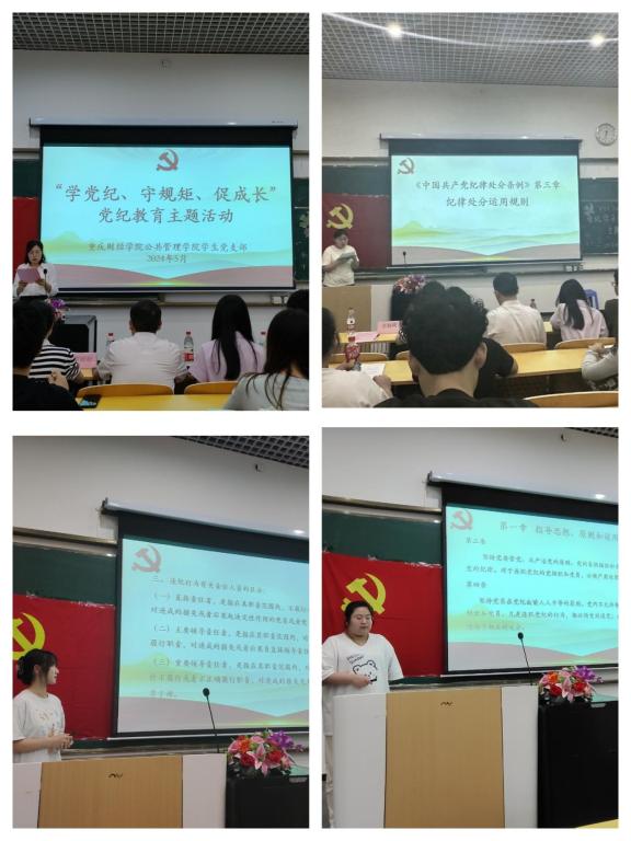 活动伊始,全体人员集中观看了警示教育片《忠诚与背叛》,学生党员刘蕊、谭茂树、袁欣结合影片案例带领大家学习了党的纪律处分条例和党章党规;重点讲解了廉洁自律、严明纪律、严肃组织生活等方面的内容,并通过对比分析,使大家对党的纪律有了更加清晰的认识。学生党员袁欣表示,通过学习党的纪律规定,她深刻认识到作为一名党员干部,必须自觉接受党的纪律约束。她说:“我将始终坚定信仰,严守党的纪律,为实现党的使命不懈努力。”