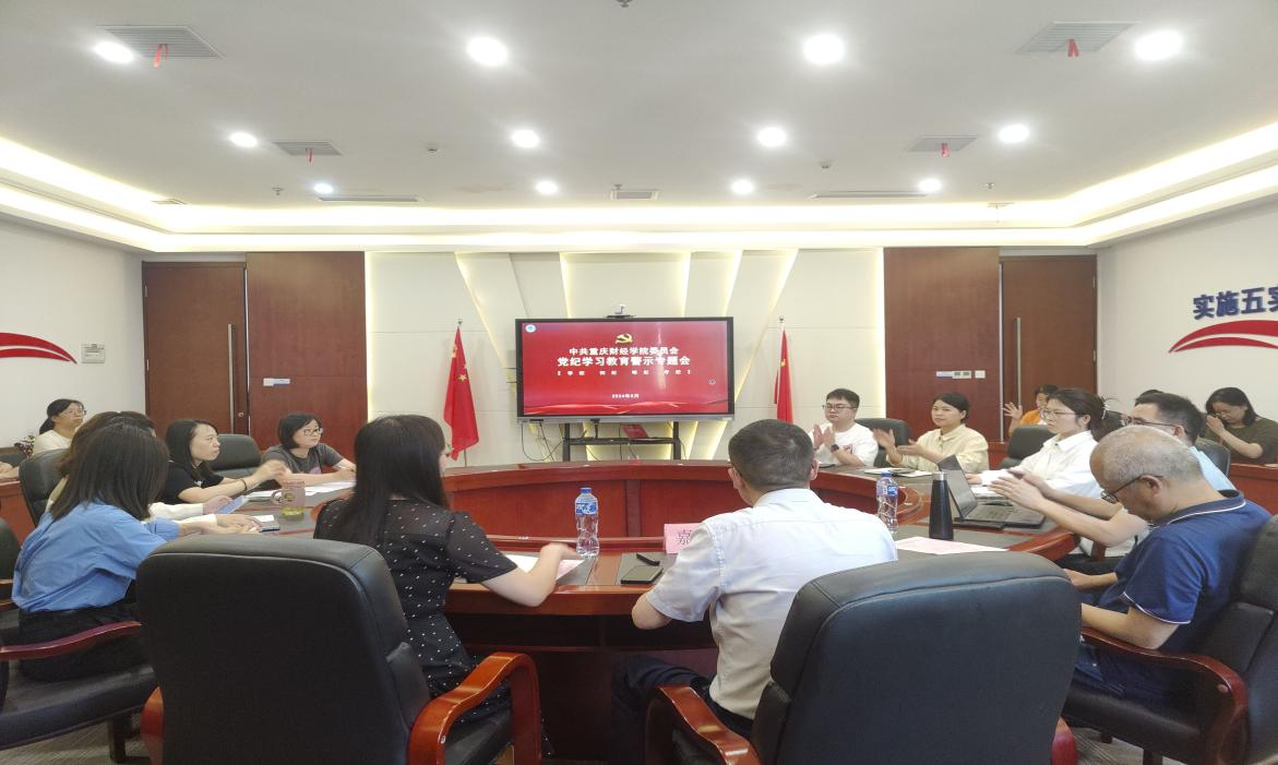 为持续推进党纪学习教育走深走实,引导学院全体党员增强纪律意识,做到心存底线、知行知止。5月31日,我校财富管理学院教工党支部在行政楼2303会议室开展党纪学习教育专题会,校党委委员、副校长李春雷以“严守党纪线,绷紧作风弦”为主题讲授专题党课,学院全体教师党员参加学习,会议由学院党总支书记宋钰静主持。